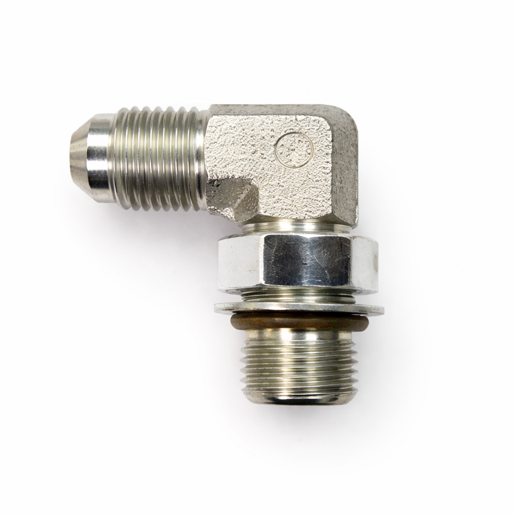 This 90 Degree Hose Fitting fits between your hot melt machine and heated hose. It features a 9/16 male JIC for standard size hose attachment. This fitting can be adjusted to face any direction to accommodate various set ups. Just simply un torque the center nut, adjust the fitting to the direction you would like and then re torque the center nut.